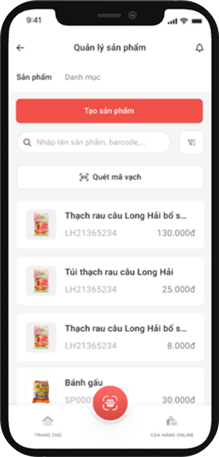 Dùng camera điện thoại quét mã vạch để nhập kho siêu tốc, không cần gõ tay. Tự động trừ kho khi bán. Tự động cảnh báo khi hàng sắp hết, hàng sắp hết đát.
